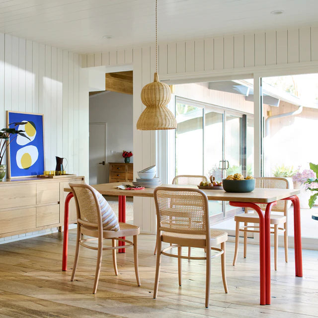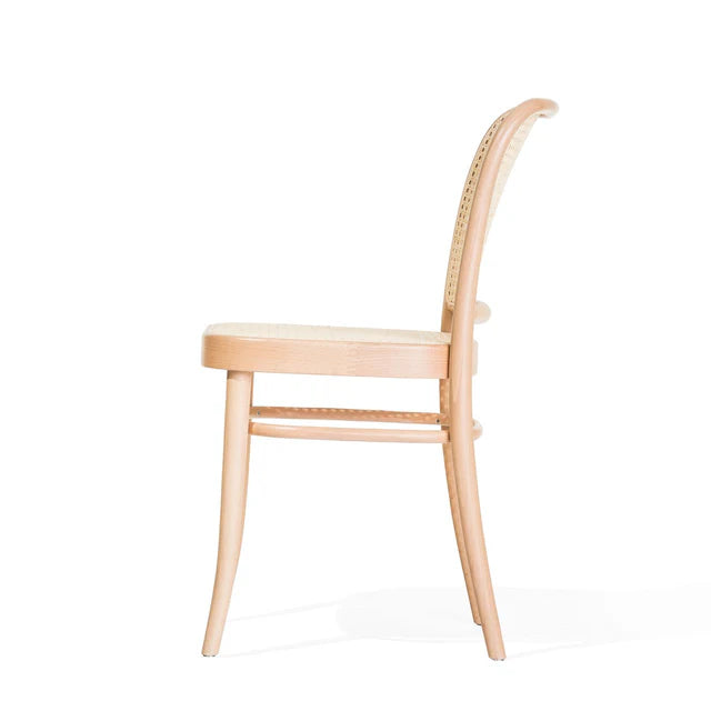 Originally designed by Josef Hoffman in 1930, the Lightweight Rattan Chair is handcrafted using a revolutionary steam-bending technique. Noted for its elegant form and durable build, this chair features an upholstered seat, woven rattan backrest, and graceful frame, making it the perfect addition to both modern and traditional dining tables. Expertly crafted in the Czech Republic.